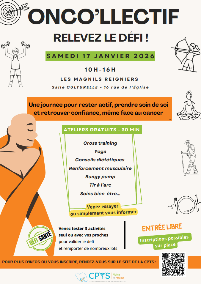 La CTPS Plaine et Marais organise une journée ONCO’LLECTIF pour rester actif, prendre soin de soi et retrouver confiance, même face au cancer.